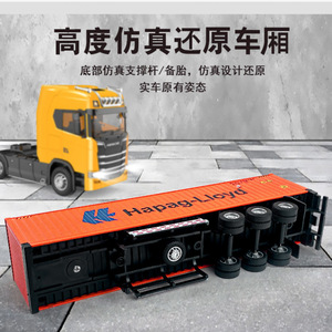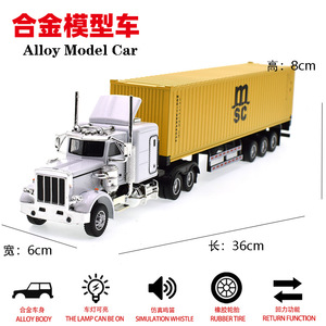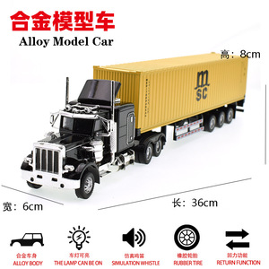 国境を越えた合金トレーラートラックのアメリカ大型トラックのバンのおもちゃ卸売りコンテナトラックの模型