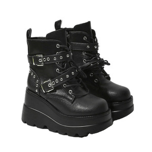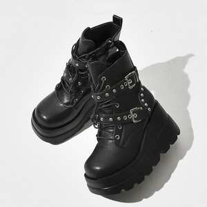 身長増加靴 cos10cm アニメ靴厚底パンクマーティンブーツ夏薄型ホットガールショートブーツ女性ゴシックスタイル