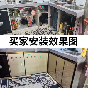 結晶鋼キャビネットドア板強化ガラスキッチン台アルミ合金フレーム付きキッチンドア