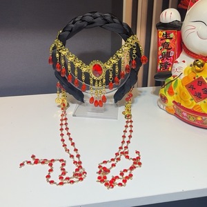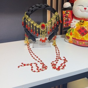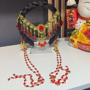 新しいファッションエスニックスタイルヘビーハンドヘアフープヘアピンレッドロングタッセルヘアアクセサリー