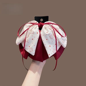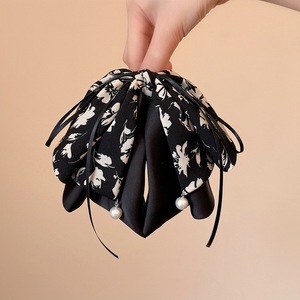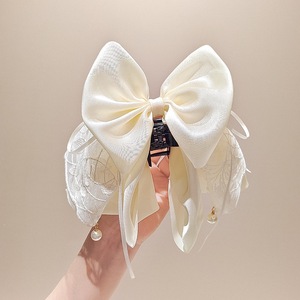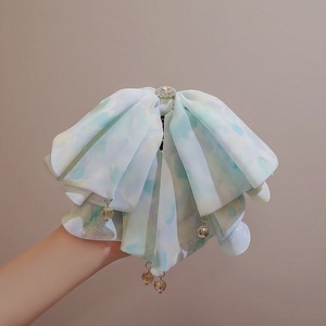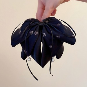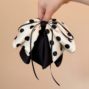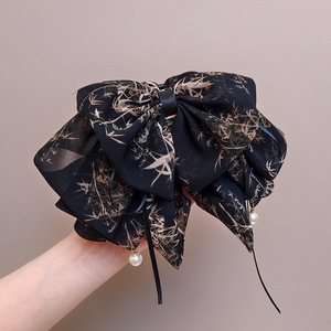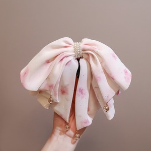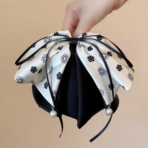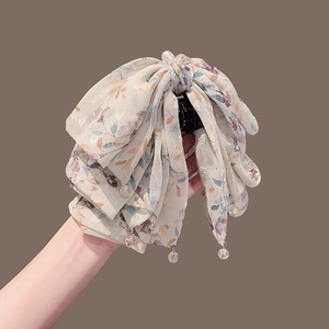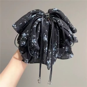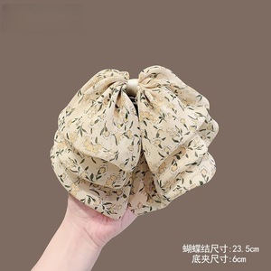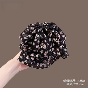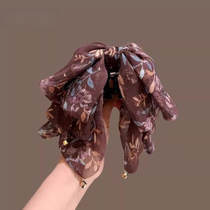 メッシュスイートプリントリボンリボンクリップ、高級感、ボリュームアップ、ローポニーテールヘアクリップ、後頭部ヘアクリップ