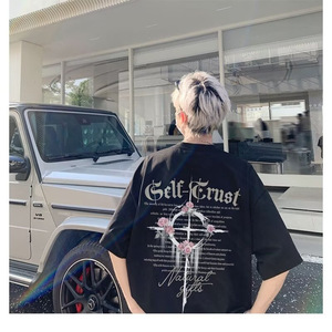 純綿半袖Tシャツメンズトレンディブランド夏ルーズ五分袖新作ネットセレブトレンドインシンプルプリントトップス男性用