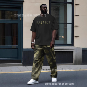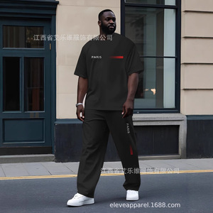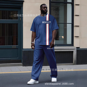 クロスボーダーメンズラウンドネックTシャツとパンツスーツ3Dデジタルプリントシンプルレタープレーンスタイルホットセールスポーツセット