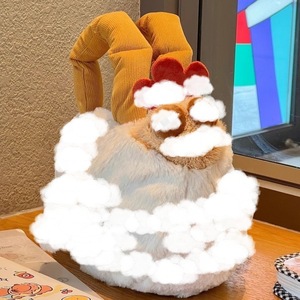 醜い萌え鶏が斜めにかわいいバッグにまたがっています。