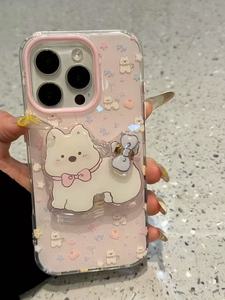 ファンデーションの紋様の蝶結びの子犬はiphone16 proの携帯電話の携帯電話の新型の14リンゴ15/13/12女性8を適用します。