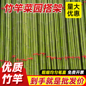 籐の竹竿に登る春の野菜棚菜園は竹の屋外の旗のフェンスの竹の棒の卸売りを掛けます。
