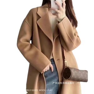 2025秋冬 オーバーニー丈 シャネル風 ウールコート レディース グレー 小柄さん向け ウールコート ブラック