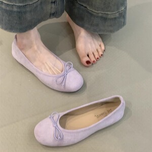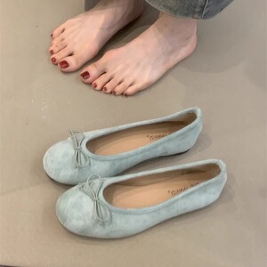 優しい妖精バレエシューズ 2025 春フレンチスウィートガールブルーリボンラウンドトゥフラットシューズ