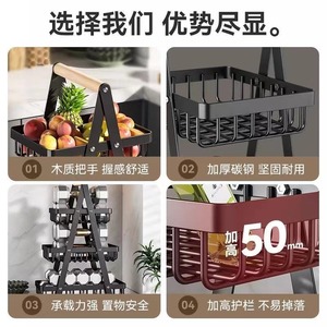 フルーツバスケット二層収納木製ポータブルバスケット鉄収納ラック多機能フルーツ三層収納バスケット収納ラック