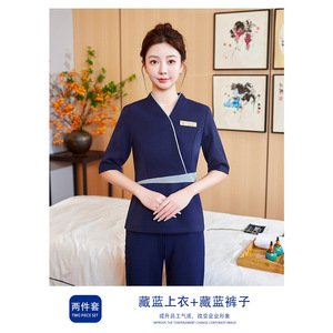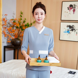 高級美容師作業服、女性用パンツスーツ、ヘッドセラピストフットバススパヘルスセンター、マッサージ作業服