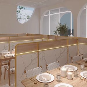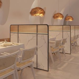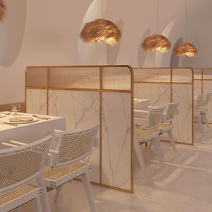 新款餐厅烧烤店火锅店过道屏风隔断遮挡墙铁艺长虹玻璃半截卡座