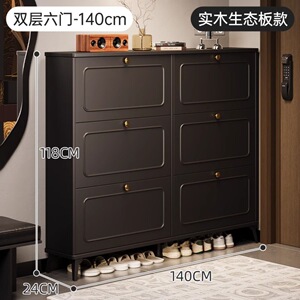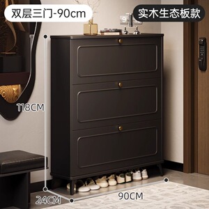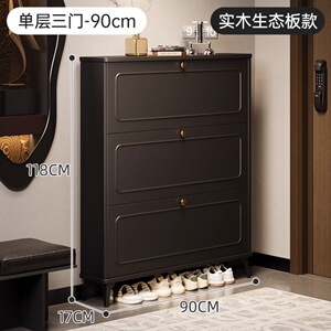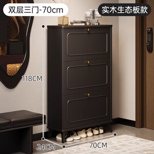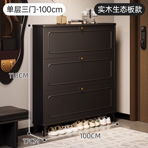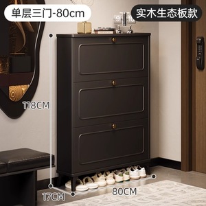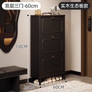玄関ドアの外にある黒い無垢材の靴キャビネット、屋内用の非常に狭いダンプカートの玄関収納キャビネット、壁に一体化