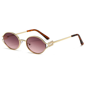 椭圆镂空太阳镜2025新款欧美太阳镜跨境时尚辣妹复古墨镜凹造型潮
