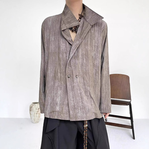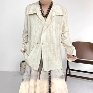 新中式复古宽荡领不规则衬衣男女小众设计感简约休闲国潮牌衬衫男