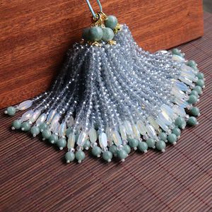A311 グレーブルークリスタルカルセドニータッセルスイベルペンダントヘアピンブレスレットネックレス diy 衣類アクセサリー