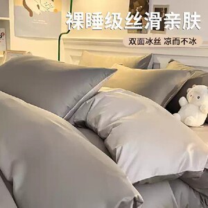 涼感素材、洗濯可能、夏用、軽量高級、学生寮用3点セット、布団カバー、化繊素材、ベッド4点セット、ベッド、無地