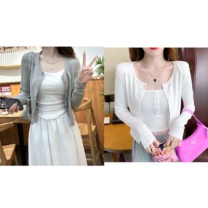 女性用グレー日焼け止めカーディガン、2025年夏アウターウェア、サスペンダースカート、ショール、エアコン付きルームアウターウェア、アイスシルクシャツ、多用途ジャケット