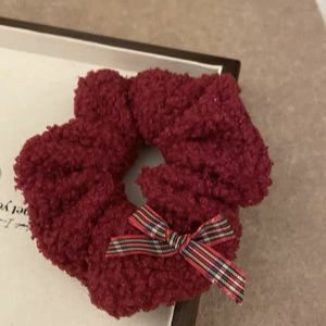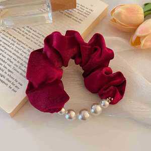 69#赤いベルベットのビーズのヘアゴム