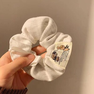 19#花柄のグレーのクマのヘアゴム