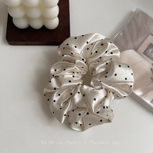 26#サテンクリームホワイト水玉大腸ヘアゴム