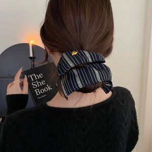 45#紺ストライプ】スクエアスカーフヘアゴム