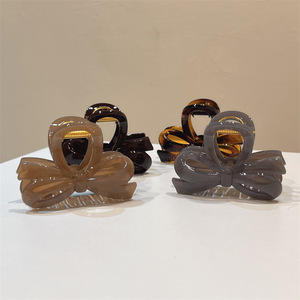 2025 春夏新作ボウミディアムグリッターチョコレートコーヒーグレー韓国風シンプルで多用途なファッショナブルなシャーククリップ