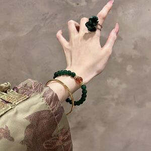 女性用ナチュラルドライグリーンブレスレット、赤いプラスチックフラワーシングルビーズブレスレット、シングルサークルとダブルサークル、積み重ね可能、シングルウェア、シンプル