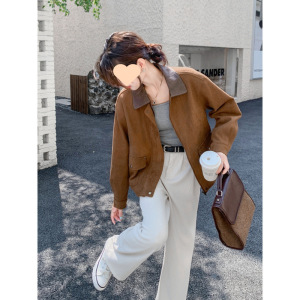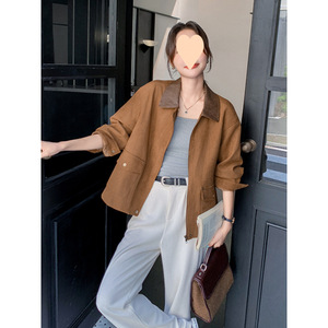 美ラードの茶色のスエードのコートの女性2025春の新型の気質のカジュアルジャケットの韓国系の短い上着