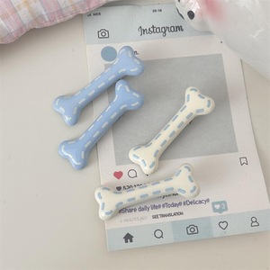 クリーム系のかわいい犬の骨のヘアピンの女性の額の前髪の挟みの側の端の砕毛のアヒルの口の挟みの子供の髪の飾り