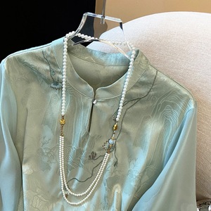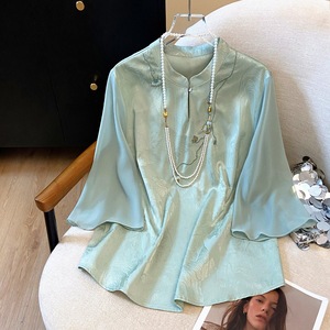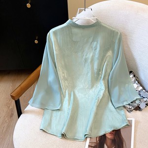 2025年新作夏国民風酢酸セクションジャカード刺繍トップス新作中国風ボタンダウンシャツの実物写真
