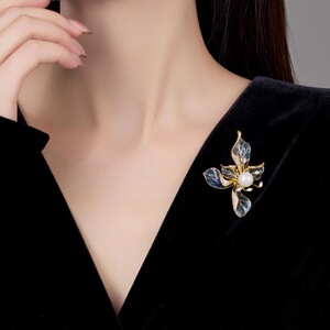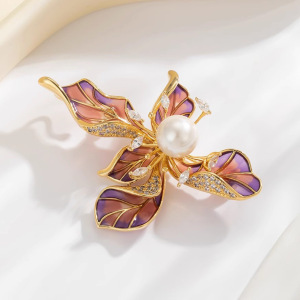 洗練されたアイリスのブローチ高級な女性気質の真珠の胸の花の軽い贅沢なデザイン感のピンスーツのアクセサリー