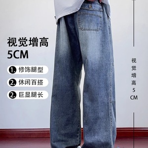 高街の潮のブランドのしわのジーパンの男性の夏の新型のゆったりしている直筒の青少年の通気性のカジュアルな直筒の仕事のズボン