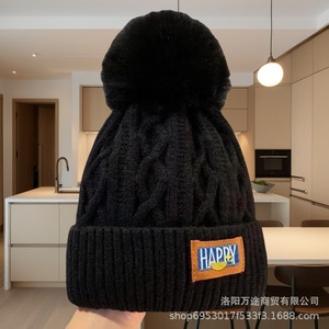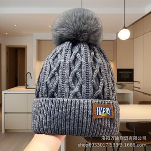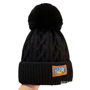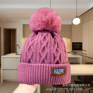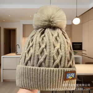 冬の暖かい女性の頭の周りの耳の毛玉の帽子とベルベットの毛糸の帽子は東北のニット帽の白いボール帽を厚くします。