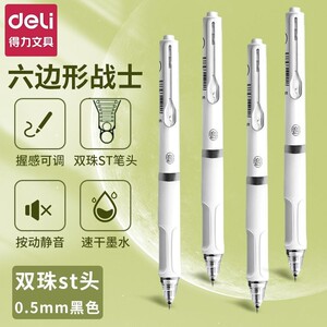 デリ SF300 六角形ウォリアー ストレート液体インクペン 0.5 ダブルボールペン STペン先 学生用 静音プッシュ式 黒インク ゲルインクペン