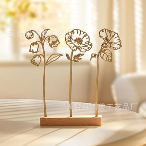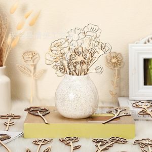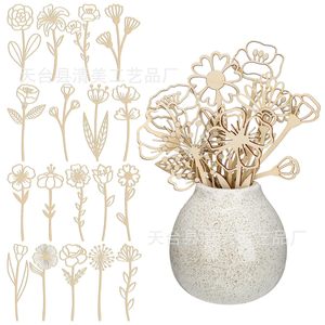 木製野生の花の装飾セット木製花中空サイン野生の花の茎レーザーカット花家族の誕生日ホリデーアート