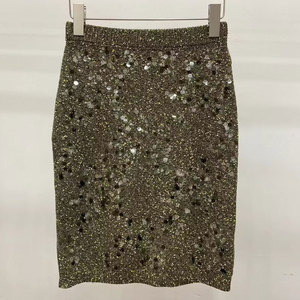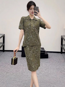 2025 新しい夏の無地スパンコールポロカラー半袖セーター女性のカジュアルファッションシンプルなトップスカート