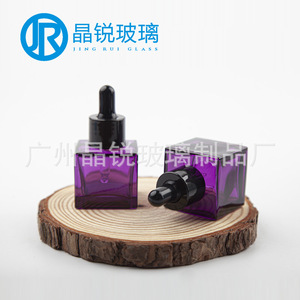 スクエアスポイトローションガラスボトルクリスタルホワイト素材 30 ミリリットルスクエアカラーガラスエッセンシャルオイルジェルヘッドスポイトボトル