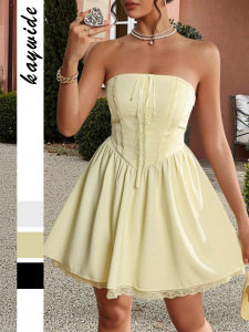 クロスボーダーヨーロッパとアメリカのエレガントなスタイルのレディースチューブトップショートスカートドレス婦人服2025春夏アマゾン独立サイト痩身