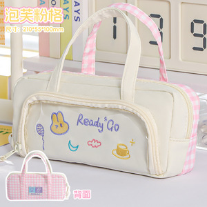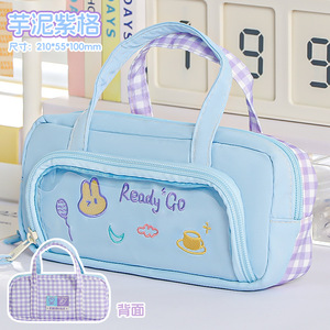 2025年の新型高颜値マカロンの両面は色の手にぶつかって筆袋の大容量の学生のかわいい文房具の箱を持ちます。