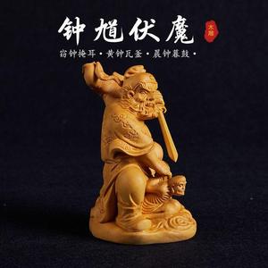 木彫り仏像小葉ツゲ木彫り鐘馗悪魔退治ホームリビングルームデスクトップ中国工芸品装飾品