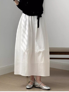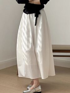 文学的な白いハイウエストの日本雑貨風花のつぼみスカート、傘スカート、女性用ヴィンテージスカート、Aライン知的スカート