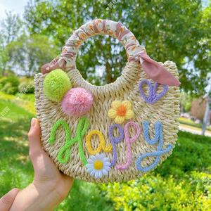 母の日毛玉レターストローバッグ DIY 素材バッグハンドバッグ夏休み織バッグ女性の花バッグ