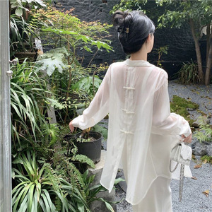 新しい中国風のシャツジャケット女性の夏薄い長袖カーディガン 2025 新しいアウターシフォントップ