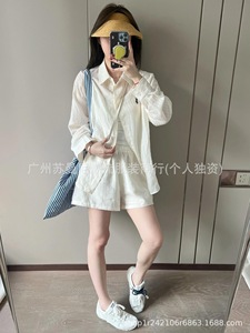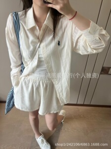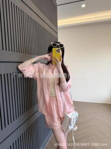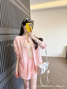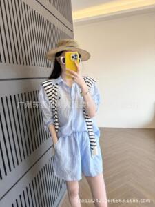 25春夏新作 縦縞長袖シャツ ゆったりハイウエストショートパンツ カジュアルツーピースセット 身長アップ効果 2025新作
