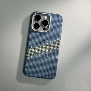 ケブラー炭素はiphone16 promax携帯電話のフロストリンゴ15の転倒防止繊維の紋様の磁気保護カバーを適用します。
