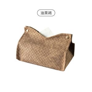 織り模様のインターネットセレブホームリビングルームコーヒーテーブル無地PUレザーティッシュボックス北欧シンプルなハイエンドのエレガントなティッシュボックス