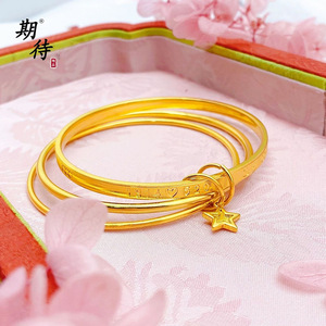 金店の同型沙金三生三世星素輪ブレスレット三輪手環が彼女にプレゼントするのを楽しみにしています。