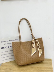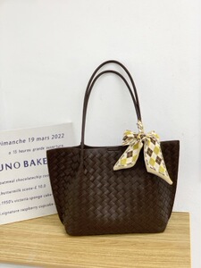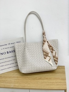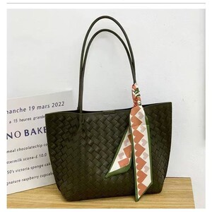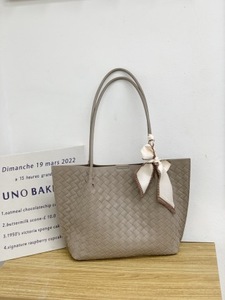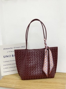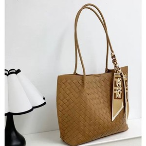 大容量跨境手工编织托特包简约高级感真皮手提单肩腋下包女腋下包