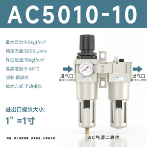 エアソースプロセッサ デュアルユニット AC2010-02/3010-03/4010-04 フィルター圧力調整弁 油水分離