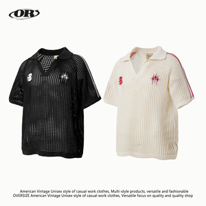 OREETA国潮網目抜きvネック半袖tシャツ男女潮牌ゆるいカジュアル襟POLOニット